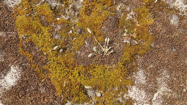 Kleverige reigersbek, Gegroefde veldsla, Duindaalder en het zeldzame Saucijs-baardmos zijn kensoorten. Onder de mossen zijn Groot duinsterretje, Purpersteeltje, Gewoon klauwtjesmos en Bleek dikkopmos veel aanwezig. Elandgeweimos, Gevorkt heidestaartje, Vals rendiermos en Kraakloof hebben onder de korstmossen de hoogste presentie. Andere opvallende soorten zijn Zanddoddegras, Zandhoornbloem, Muurpeper en Duinreigersbek. De voornaamste overblijvende grasachtige planten zijn Zandzegge, Rood zwenkras (incl. Duinzwenkgras), Smal fakkelgras, Buntgras en Helm. Veel voorkomende eenjarigen zijn Ruw vergeet-mij-nietje, Vroegeling, Veldereprijs en Kandelaartje. Veel zeldzamer zijn Dwerggras en Kleine ereprijs. Onder de overblijvende, kleine kruiden valt Geel walstro op, onder de meerjarige soorten die na vruchtzetting afsterven zijn dat Jacobskruiskruid en Veldhondstong.