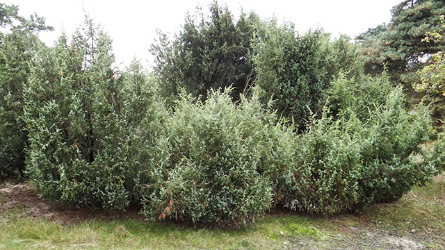 Kensoorten ontbreken, maar de associatie is door het dominant optreden van de naamgevende Jeneverbes en een groot aantal differentiërende soorten goed gekenmerkt. Dit betreft zowel soorten van heiden en heischrale graslanden als van meer stikstofminnende milieus. Tot de eerste groep behoren onder andere Struikhei, Bochtige smele, Schapenzuring, Zandstruisgras, Pilzegge, Fijn schapengras en Liggend walstro. Tot de (kleinere) tweede groep behoren Wilgenroosje en Smalle stekelvaren. Verder wordt de associatie gekenmerkt door een groot aantal sporenplanten, waaronder de bladmossen Gewoon gaffeltandmos, Bronsmos, Heideklauwtjesmos, Gewoon peermos, Breekblaadje en Gewoon pluisjesmos, het levermos Heidefanjemos, en de korstmossen Open rendiermos, Fijn bekermos en Bruin heidestaartje. De rijkdom aan korstmossen vormt een duidelijk verschil met de veel graziger (en in ons land veel zeldzamere) Associatie van Hondsroos en Jeneverbes. Zomereik en Wilde lijsterbes zijn de belangrijkste begeleiders onder de houtige planten.