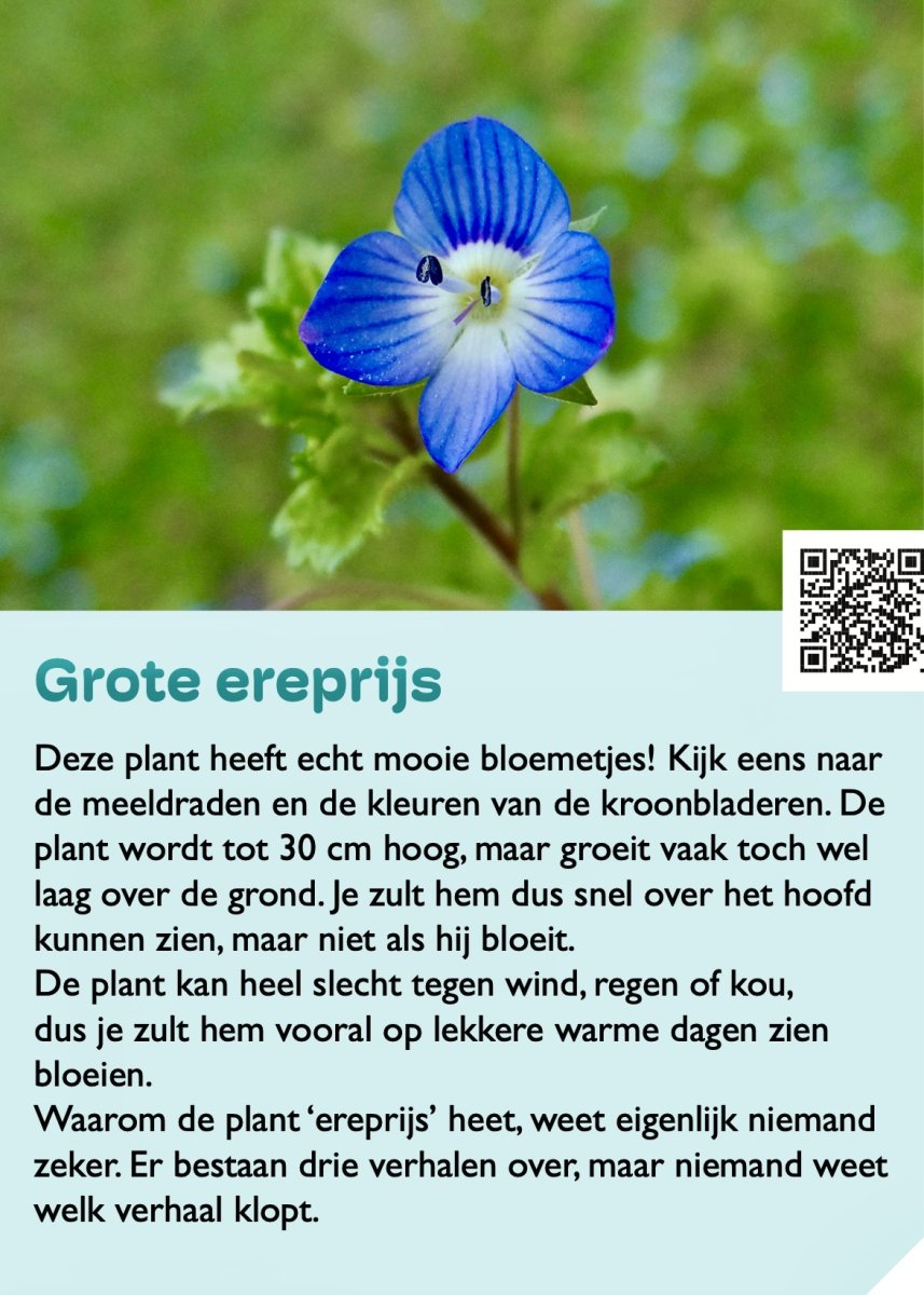 De kenmerken van Grote ereprijs zijn te vinden in het plantenpaspoort, tabje kenmerken
