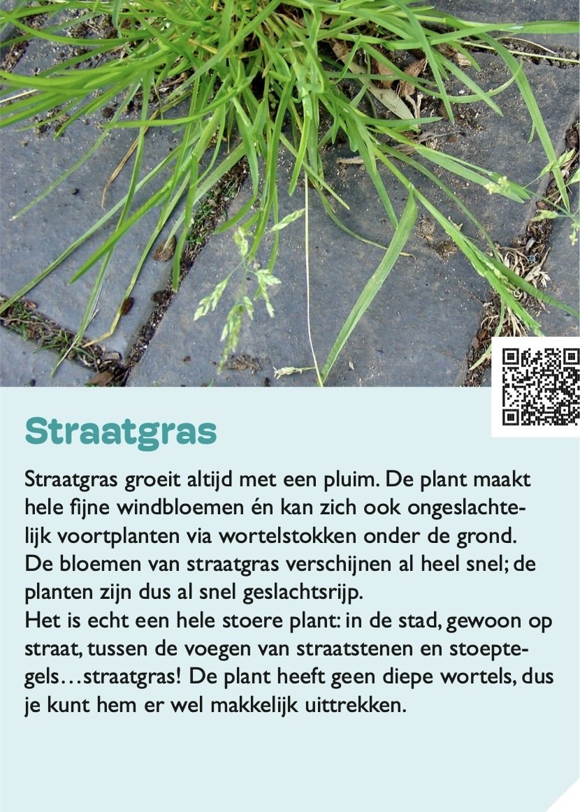 De kenmerken van Straatgras zijn te vinden in het plantenpaspoort, tabje kenmerken