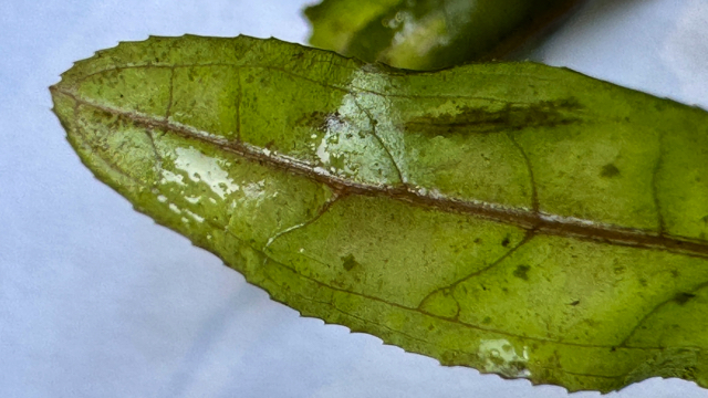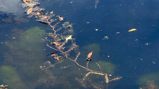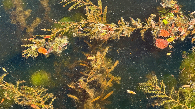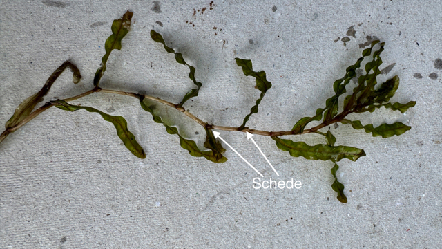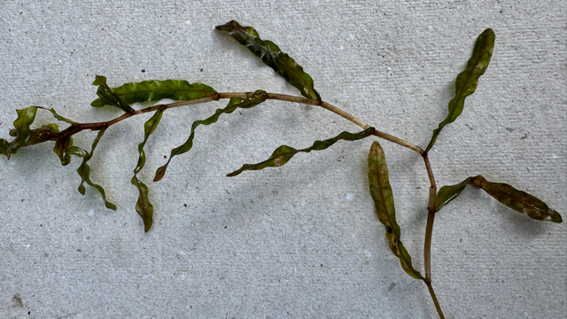 Onder de Fonteinkruiden met langwerpige tot lijnvormige bladeren valt Gekroesd fonteinkruid, Potamogeton crispus L., uit de Fonteinkruidenfamilie of Potamogetonaceae op.