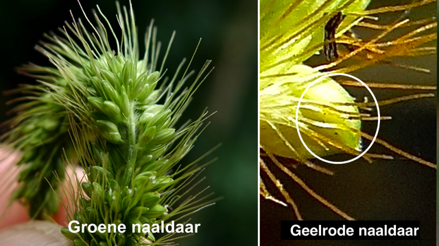Naast Geelrode naaldaar en Kransnaaldaar komt een derde soort uit dit geslacht Naaldaar of Setaria steeds meer voor op bemeste akkers, in moestuinen, wegbermen en op ruderale plekken ook in onze steden. Het is Groene naaldaar, Setaria viridis uit de Grassenfamilie of Poaceae.