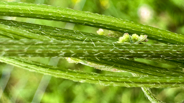 De planten hebben een penwortel waarop een ruw behaarde rechtopstaande en gevulde stengel staat. Dat de stengel gevuld is, tref je niet veel aan bij de plantensoorten uit de Schermbloemenfamilie.