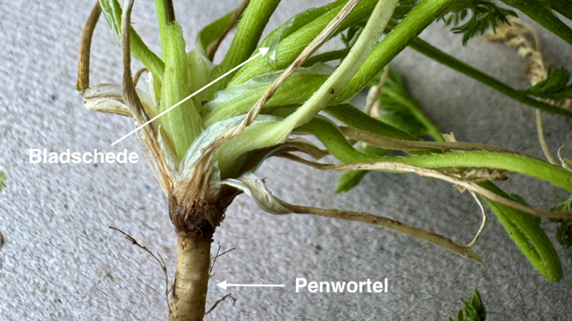 Ze hebben een penwortel en aan de gevulde stengels staan de bladeren verspreid. Deze zijn in omtrek driehoekig en hebben een schedevormige bladsteel. De bladeren zijn tot 2 voudig geveerd en de deelblaadjes hebben een ingesneden rand. Je vindt hier echter geen getande toppen aan de deelblaadjes, zoals je die wel bij Heggendoornzaad kunt vinden.