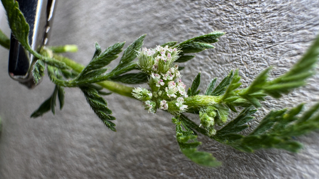 Knopig doornzaad, Torilis nodosa, is een laag blijvende voor een deel liggende en aan de stengeluiteinden wat opstijgende plantensoort van grazige dijkhellingen. De bloeiwijzen, het zijn kleine schermen, vallen niet zo op omdat ze niet aan het einde van de stengels staan maar tegenover de verspreid staande meervoudig geveerde bladeren. De vruchten zijn splitvruchten met verschillende typen buitenkant. De ene helft heeft stekels en de andere helft kleine knobbels. In zo'n scherm zitten de vruchthelften met stekels aan de buitenkant en die met de knobbels aan de binnenkant. Heel effectief voor de verspreiding door dieren.