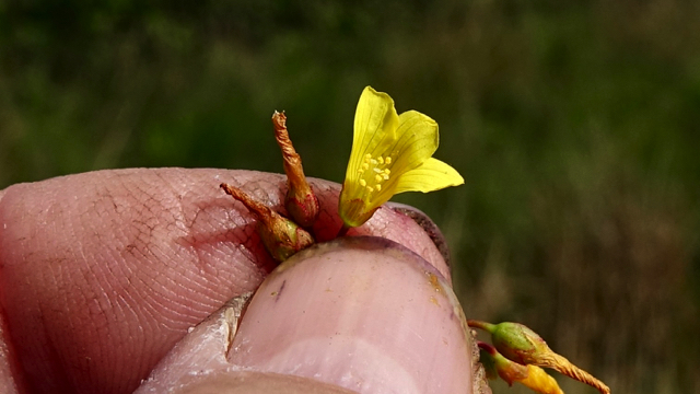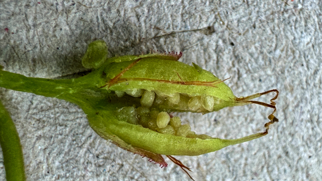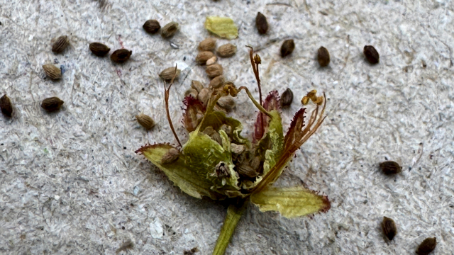 Andere (bloem-) kenmerken zijn nog dat de kelkbladen, niet de kroonbladen, aan de rand voorzien zijn van rood gesteelde klieren, en dat er drie bundels van meeldraden in iedere bloem te vinden zijn.