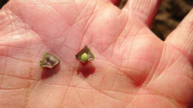 Omdat in iedere bloeiwijze bij elke plant zowel meeldraadbloemen als stamperbloemen zitten is de plant eenhuizig. De vruchten bestaan uit een nootje als zaad en de twee steelblaadjes, die ook te betitelen zijn als vruchtkleppen, zoals we dat bij de Zuringen doen. Deze vruchten kunnen goed drijven wat voor de verspreiding van het zaad gunstig is, immers via zeewater en rivierwater wordt het zaad aldus vervoerd.